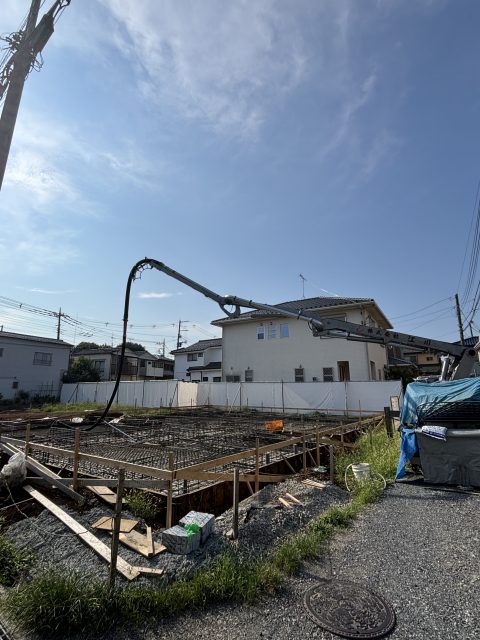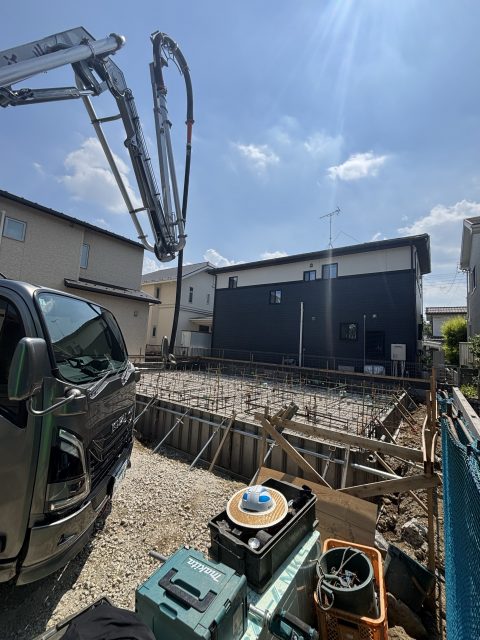 今日は朝一、さいたま市見沼区でベース打設させて頂きました!