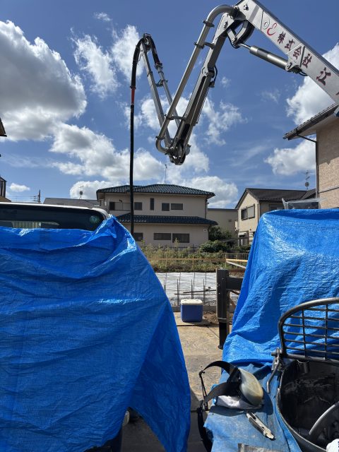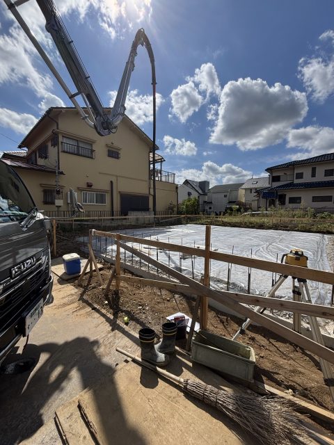 今日は朝一、取手市でベース打設させて頂きました!