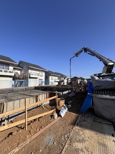 今日は朝一、越谷市で車庫ベース打設させて頂きました!