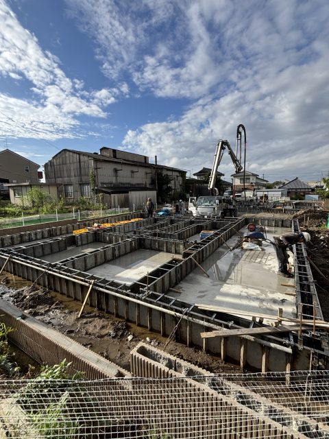 今日は朝一、越谷市で立上打設させて頂きました!いつもありがとうございます♪ 昼一、江戸川区でベース打 …